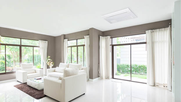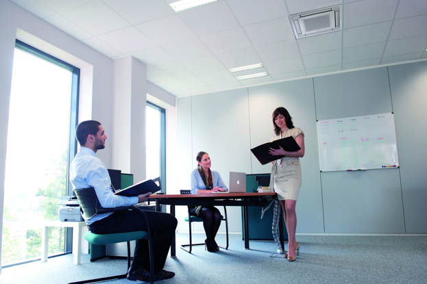 eignen sich für Räume ohne Zwischendecke oder wenn auf dem Boden bzw. den Wänden nicht genügend Platz vorhanden ist. So können selbst hohe Räume ohne Leistungsverlust beheizt oder gekühlt werden.